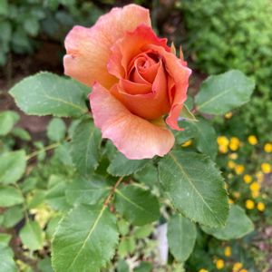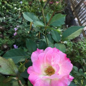 ミニバラ🌹🌹🌹 2番花 脇から ヒョイヒョイ 出ている葉っぱは 秋海棠🌱