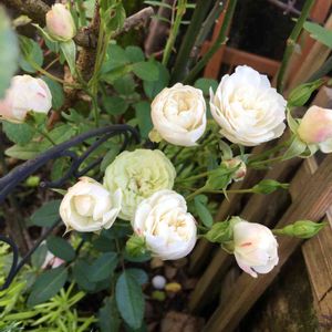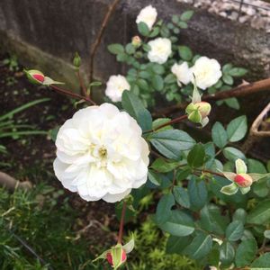 マルク アントン シャルポンティエン クリームイエローから ホワイトへ変わります。 昨年 ひとめぼれ😍 イエローガーデン フェンス沿いに 植えました。✨🌼🤗