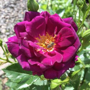 久しぶりの お日様🌞と 同時に開花🌹 さっそくハチ🐝さん⁈ がやってきました。🤗