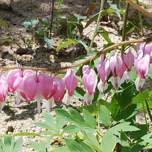 タイツリソウ。 雨で折れてしまった😱 これからは支柱を立てて、大事にしてあげよう。 そして鯉のぼりのような花を来年も沢山つけてね。