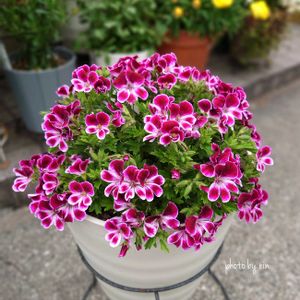 ペラルゴニウム グランパッソ 今年お迎えした子 角度によってはまぁるく見えるけど実際はそうでもないと言う現実 でも花数が増えてかわいくなってきました❁