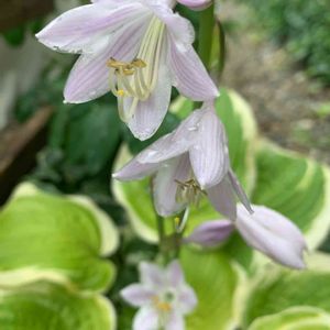 小さな庭の西の小道。 昨日丸い蕾だったギボウシの花が咲きました。見て頂いてありがとうございます。。