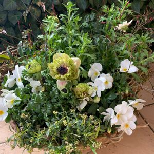 小さな庭 寄せ植え 前回の寄せ植えからのビフォーアフター。 真ん中にあったオキザリスを日の当たる場所へ移動。 先日園芸屋さんで一目で気になったグリーンのアネモネ。 イベリスが開花してから投稿しようと思いましたが イベリスが咲かないので...まぁ良いですか。