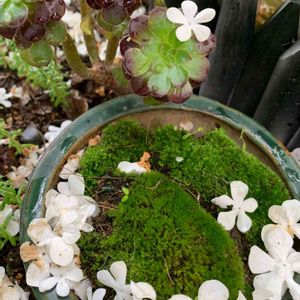 先日園芸店でのおまけに頂いた花。 車から下ろす時にポキッと折ってしまいました。 ひと枝なのにボリュームのあるグリーン🍃 寄せ植えで伸びきったス-ノポ-ルと一緒に〜小さな空間に* この折れたひと枝以外の本体は庭に植えました。どんな花が咲くか?咲かないか? 楽しみな所です〜*