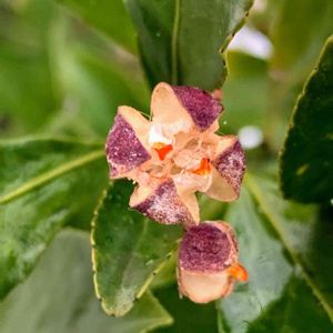 朝散歩。1℃ 小雨くもり。 マサキ。 実がなり実が弾けたところも(1/3 pic) その後も何だか花のようで可愛いいです。.*。