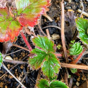 今朝。小さな庭。 雨の中でツヤツヤいちごの葉。 これからの葉の成長といちごが楽しみ♪ 少しお肌(葉)が荒れています...? 幸せの小さなハ-ト💚わかりますか。笑 いちごはまだですが、 🏷15日はいちごの日に 参加させて下さい〜*