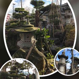純和風の家の庭 冬囲い終わりました。 サザンカはまだ咲いているので囲っていません。