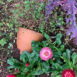 小さな庭の花 「今日の花デイージ*」 久しぶりに今日の花を投稿します。 蕾が沢山、これからも可愛らしい花を 見せてくれそうです。 右上の眩しすぎるムラサキ。 去年の鉢から庭に移動して植えていた葉牡丹。 いきなり成長していてびっくりしています...。