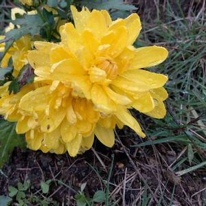 朝散歩。13度。風小雨。 花のない散歩道。黄色い光のようなヤマフブキがきれいに咲いています。ヤマフブキではないようです。菊ではと教えて頂きました。 写メを撮る事で、ひとつひとつじっくり眺める事ができました。