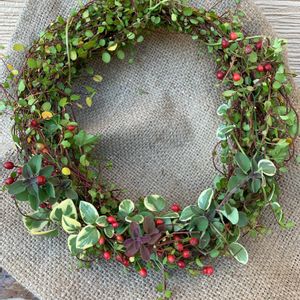 小さな庭。 みどりの静かな支配者。 好きですよワイヤープランツ🌿 でも、 でもどこまでも、こんな所までと広がりすぎた。 剪定の庭仕事。 剪定しているうちに... いつの間に庭の植物でリースを作ってましたー♪︎~(・ε・。)