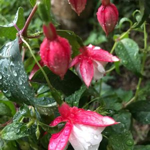 フクシアが次々に開花です💜 踊ってるみたい〜🤭風にゆらゆらしてるのもまたカワイイです。