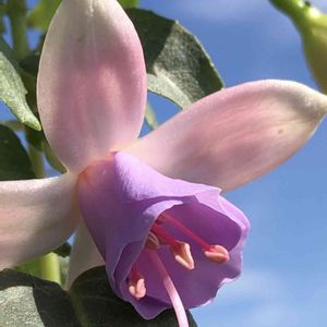 こんにちは😊 夏に見切り品100円で購入したフクシアさん✨うちにもともといたフクシアさんとは、花の色も形も違うのでとっても可愛いです💕