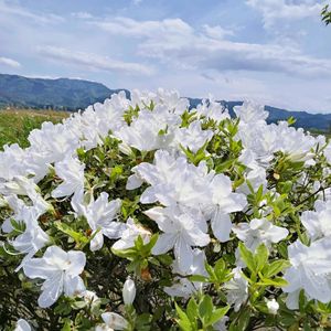 今日のお庭 白いつつじもまあるい形に咲いてくれました もう少しもりもりになって欲しいです🤍🤍🤍 4枚目のさつきも可愛いです💞