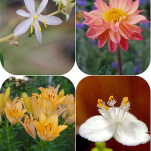 ダリアが咲き始めて スカシユリが咲き終わりそうです ↖️ オリヅルラン(折鶴蘭) 別名「チョウラン」 ↗️ ダリア 和名「テンジクボタン(天竺牡丹)」 ↙️ スカシユリ(透百合) 別名「イワトユリ」「イワユリ」 ↘️ ブライダルベール 和名「ヒメトキワツユクサ(姫常磐露草)」 カーポート下にて 25.06.19