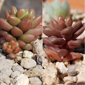 やっとこいつの正体わかった! この子はやはり京鹿醉月のB個体 形はAよりカリフォルニアサンセットに似ているし 成長速度もAより断然良い 葉挿し用の葉っぱを取ってから2週間でもう子株ハツラツ! そういえばちょうど一才になりましたね もしかしたら夏前でワンチャン咲いたりするのかな?期待! 下は 左からB A カリフォルニアサンセット の葉っぱ比べ 色の仕方がカリフォルニアサンセットじゃない