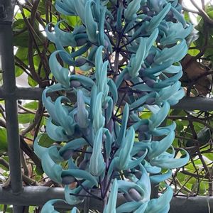 翡翠葛(ヒスイカズラ) 初めて、咲いている時に出会いました。 県内の植物園にもあるようですが、 開花時期と合わなくて…… 自然界に、こんな素敵な色の花が あることに驚かされました。 誘ってくれた花友さんに感謝💕💕