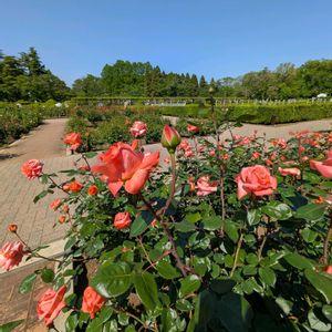 🌳4月末の神代植物公園より ①🌹まだ咲き始めでした ②広大なバラ園🌹満開時はさぞや見事でしょうね😍 ③長〜く続く満開の藤棚も見事でした💟 ④温室には見たことのない子たちもたくさん🥰 ⑤ヒスイカズラも💜💚 (秋田の生態系公園温室の超大株ヒスイカズラはお引越しに失敗し✭に…)