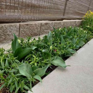 ウチの花壇🌿 チューリップの蕾が伸びてきました🌷 去年は、ノースポールに埋もれて失敗したのですが、今年はナデシコの間に植えてみました🌱 もう少ししたら チューリップの花が楽しめそうです💕