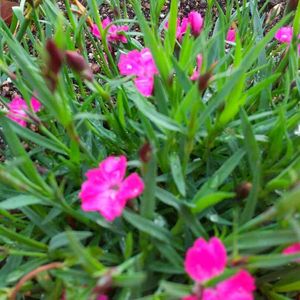昨年春に蒔いたミックスフラワーのこぼれ種を冬越ししたら、今朝お花が咲きました💗 ナデシコダイアンサスでしょうか😊🎵 ミーテラズベリーローズと似た色合いで可愛いです❣️