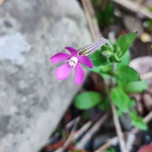 畑に植えてるのはまだ咲いていないのに、石の隙間で咲いてます。高さ10cm未満。 かわいい ムシトリナデシコ