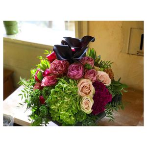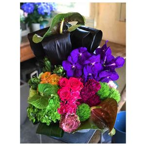 こんにちは😊 母の終了致しました🤗 体中が痛くてボロボロ😅 、 沢山のご注文、雨の中来店頂きましたお客様本当にありがとうございました😊 お陰様でお店は空っぽになりました😌 夕方以降にいらして頂いたお客様はお花が選べなくで申し訳ありませんでした😉 、 地元の人気のイタリアンレストラン#callasさんからのご注文でした。 、 あるアーティストのライブに贈るアレンジメント🤗 、 サイケデリックな感じが似合うという事でお店にある花で出来るだけ雰囲気を出してみました😉 callas様ご注文頂きましてありがとうございました🤗