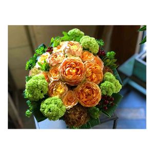 おはようございます😊 今日も一日頑張りましょう🤗 開店祝いのアレンジメント オレンジ系で。