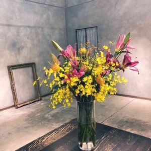 本日は定休日の為、ご注文分の発送のみとさせて頂きます😊 、 今日は麻布十番のギャラリーで開催している師匠の個展に行って来ようと思います🤗 、 アレンジは個展開催のお祝い。