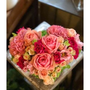 誕生日のアレンジメント。 ピンク系にオレンジを入れてお任せ🤗