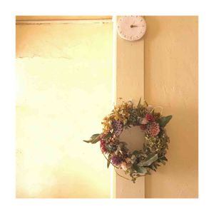 レッスン。 生徒さんの作品です🤗 、 ドライフラワーでリースを作ってもらいました😊 、 良い感じに出来ていました👍😙