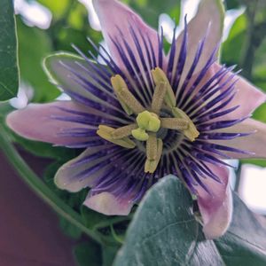 今日の花トケイソウ 5、6年前食べたパッションフルーツから種を摂り、発芽させた苗から花を咲かせ実を付けました。 半年以上は家の中で2、3年育てていましたが冷夏で枯れてしまいました。