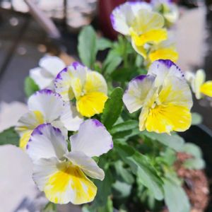 去年の秋に購入したビオラで交配にチャレンジした種から 育てたた子たちの中でも、一番変わった模様のビオラ🌱 白地に黄色の絞りで上2枚の花びらに紫の縁取りの、何とも不思議な子…🤔 はじめてのビオラ交配で個性的な子が生まれると楽しいですね♪😆