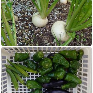 寒くなって 蕪が大きくなってきましたぁ~❗✌️😄 ↓は、本日の収穫ぅ~❗🤭 茄子は、来週あたりで終わりだなぁ…😓 美味しくいただきます❗🙏