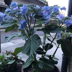 【今朝の紫陽花】 ①三河紫陽花 有松 (地植え) ブルーの絞り柄🩵だいぶ理想の色に近づきつつあるかな❓ ②星の桜🌸 (地植え) 桜色にならないよぅ〜😩 ③手前が2年目のコットンキャンディ(ピンクに咲かせるために鉢植え管理) 奥が地植えの星の桜🌸 ④奥が有松 手前がオマケでいただいたヤマアジサイ。品種名がわかりませんが、画像からの検索で1番に【藍姫】って出てくるので、もう藍姫に決定でいいかな❓(๑˃̵ᴗ˂̵)