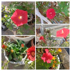 pick No2082 9/17(水) お早うございます☀ 陽がまだ昇らない時間帯に目覚めたけど、8時前の撮影になっちゃった 😊 1枚目は赤色🎶❤の花たち サカタのタネからのるこう朝顔が、久々に開花 幾つかの芽を蔓が絡まる中根切りをして 花つきを良くしてみた ↘️ゼラニウムの赤色花 ↙️ミニガーベラに幾つもの花が上がってきてる🎶 平日の水やりも行き渡る?のか、葉の先端も緑色になり見ていて嬉しくなる٩(๑❛ᴗ❛๑)۶ 2枚目は 黄色🟡の花と青色💙の花 和わたの花 バタフライピー メマツヨイグサの昨夜は撮影見逃し翌日の姿 3枚目はピンク色の💗花と🟡の花 朝顔スプリットメタル ルドベキア.タカオ🟡 ポーチュラカ🟡 キバナコスモス🟡 お散歩ちゃんスタンプを5枚の重ねだとサイズエラーになるので、 後で1枚を試してみる 洗濯洗剤切らし急ぎ買い物へ 久々に暑い一日になりそう 皆さん水分補給しましょ 良い一日をお過ごしになられて下さいね 👋 行ってきます