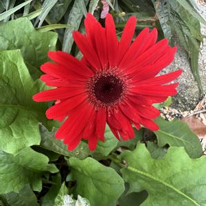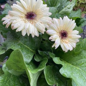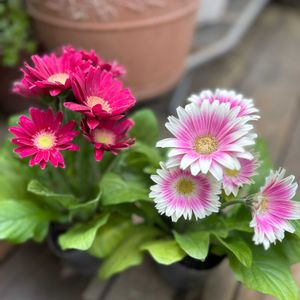 ミニガーベラ💠 小さな株なのに 狭そうに大きな花が 2つも咲きました🤭少し気温が 下がると お花達もイキイキしてますね✨