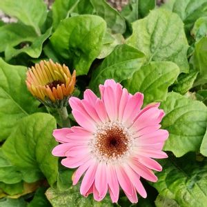 とても同じ🌸とは思えない…🤔💭①12/6撮影②4/19撮影 娘の黄色のミニガーベラ💛の救済方法をGSのお友達から教えて頂き、この子もいつも葉の調子、花が咲いても、ちと汚くて😰 同じように土の総入れ替えして、同じ形の4号鉢で、葉にはスプレーをしながら育てていました 💛、🩷の鉢は全く同じに育てていたのに夏の終わりに💛はダウンしてしまいました😭 (実は蕾が上がってくる日まで生きてる子は💛だと思っていました😅) 💛も過去Picにありますが、 赤い縁どりがあり可愛いかったなぁ もう販売してないかなぁ🤔