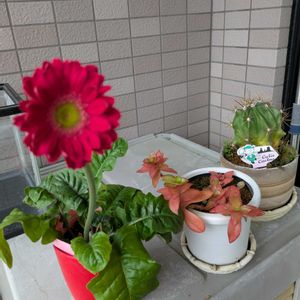 おはようございます😊 今日は、曇り空☁️ 低身長のガーベラさん 果たして花開くかな?💖 多肉さん達は、何処に?