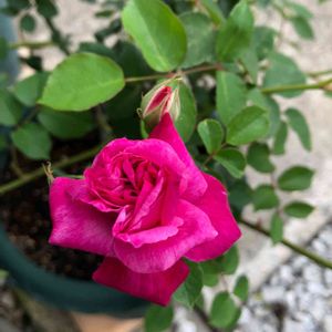 うちのプチガーデン玄関前7 a.m. お隣のお家の陰で まだお日様は当たりません 🌹ナエマさんはまだ蕾です 来週あたり、お顔が見れるかな♥︎︎∗︎*゚