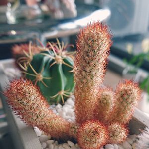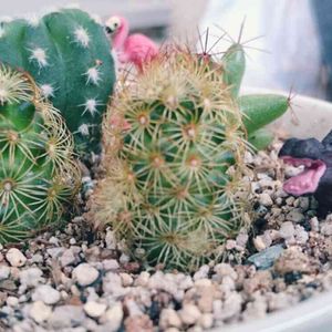 ダイソーから連れて帰って来た金手鞠ちゃん。 右側の子の下に赤ちゃんの気配?!?!オメデタ??😍 トゲが盛り上がってるような気がする…✨