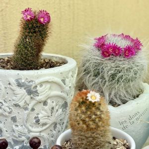 玉翁の花冠かわいい♡ 謎マミラリアも咲き始めたところ。 カルメナエは咲き終わりで、残ったお花が90年代のギャルみたい。