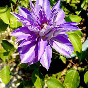 去年植えたクレマチス 手塩さん、初めて咲きました✨ 支柱以上に伸びたので慌てて麻紐を近くの木に渡したり😳💦 元気な子ですね! 後ろのビバーナムと同時期に咲いてくれて嬉しいな😆💕