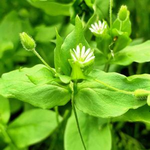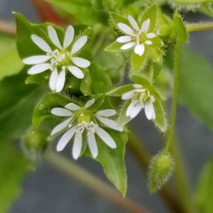 畑作業の合間の野草観察① ウシハコベ見つけた❣️ ✨✨✨ 【ウシハコベ(牛繁縷)】 Stellaria aquatica ナデシコ科ハコベ属の越年草