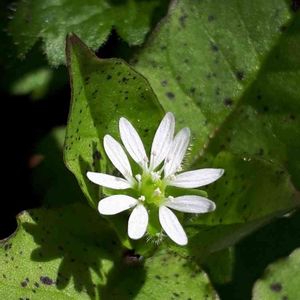 小春日和☀💚 * 野原には一足早い春🌼💖💕 * あちこちで春の七草やら、春によく見掛ける雑草ちゃんを見掛けます * これはもう毎年そうなのだけど、春を待ちきれなくて「流行の最先端は私よ🎶」とでも言いたげに咲き急ぐのでしょうか? * ハコベをマクロレンズで 10枚に見える花びらは、本当は5枚です ・ めしべの先が5つに分かれているので、これはウシハコベ ・ 普通のハコベよりも茎や葉っぱがちょっと大柄で、背も高いです * 2018.11.16 撮影