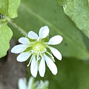 💕輝く小さな花の世界💕 (ウシハコベ) 2023年 6月17日 撮影 過去pickです 今年は昨年の3月より 気温が低いと思います 今日の外気温 最高 +3℃ 最低 -5℃ 20時で外気温 -1℃です 公園の草も 庭の草も 遅い🐢💨 遅い🐢💨 勿論 庭の水仙やチューリップの芽も 昨年の半分ほどの丈 もちろん 近くに ハコベちゃん 見当たらない💦 ハコベというと コハコベの事をいう コハコベの事は今度見つけた時書きますネ🍀*゜ 〖ウシハコベ〗 学名 Stellaria aquatica ナデシコ科 ハコベ属 花柱 5本 雄蕊 10本 花茎 8~10mm 茎の色 褐色、暗紫色 上部に線毛有り 触ると粘る 茎は中空で白い 繊維質で有る 葉っぱ 卵形で対生し茎を抱く 花言葉🌸 集合する 愛らしい 無邪気 🏷𓈒𓏸︎︎︎︎今日のお花
