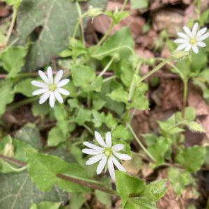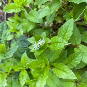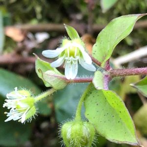 散歩の途中🚶♂️ ハコベ属は種類が多いですね🤔 ハコベに似ていますが、ウシと呼ぶくらいなので少し大型です🤏 ナデシコ科ハコベ属 越年草ときに多年草 牛繁縷 開花期:4-6月に多いが年中咲く 花は径7-10㎜、花弁は5枚、白色、萼片と同長、2深裂し10花弁に見える 日本全土に分布し、山野の何処にでも普通に見られる