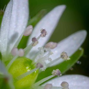 裏山に咲いていた白く小さな花。 牛蘩蔞。 以前は違いにあまり気付いていなかった蘩蔞の仲間たち。違いや特徴を調べているうちに色々な発見があります。 *ナデシコ科ハコベ属在来種 *越年〜多年草 *葉は卵型、鋭頭又は鋭尖頭。上部の葉は大きく無柄、下部の葉は小さく長柄。花と同長の萼片5個。 *花弁は5枚深く裂け10弁に見える。雌しべは1個、花柱は5個、雄しべは10個。