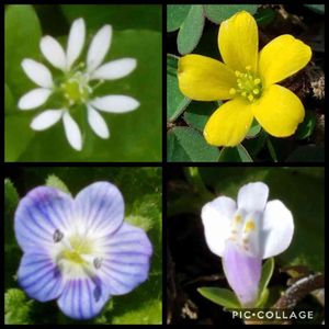 ウシハコベ 、カタバミ オオイヌノフグリ、トキワハゼ どのお花も小さいけど、咲いています♡♥