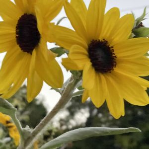瓦礫の中、雑草掻き分け 立派に成長した 零れ種からのヒマワリ🌻 花粉も出さない 種も作らない だから零れ種から芽は出ない そんな品種改良のヒマワリが 何年も命を繋げて咲いてる ど根性ヒマワリ🌻 脇芽の子も立派に咲きました💕 花芯が黒のパンクのヒマワリ🌻