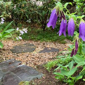 "四季の小径"春〜夏 <青花ホタルブクロ(蛍袋)>💙 可憐で可愛らしくもあり、それでいて力強さも感じられます♪ 庭をしっとりした雰囲気に演出してくれます(´∀`*)