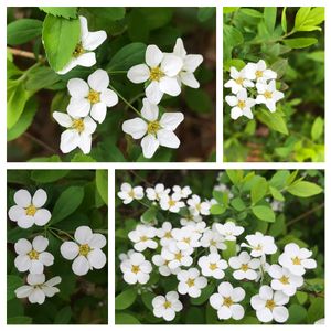 おはようございます ① ↖️↗️ おや? いつも見るのと違う✩.*˚☆。.:*・゜ ↙️↘️いつも見るユキヤナギ♡ ② オキザリス バリアビリス↻ 白くて大きなお花 別名 オキザリス プルプレア フヨウカタバミ
